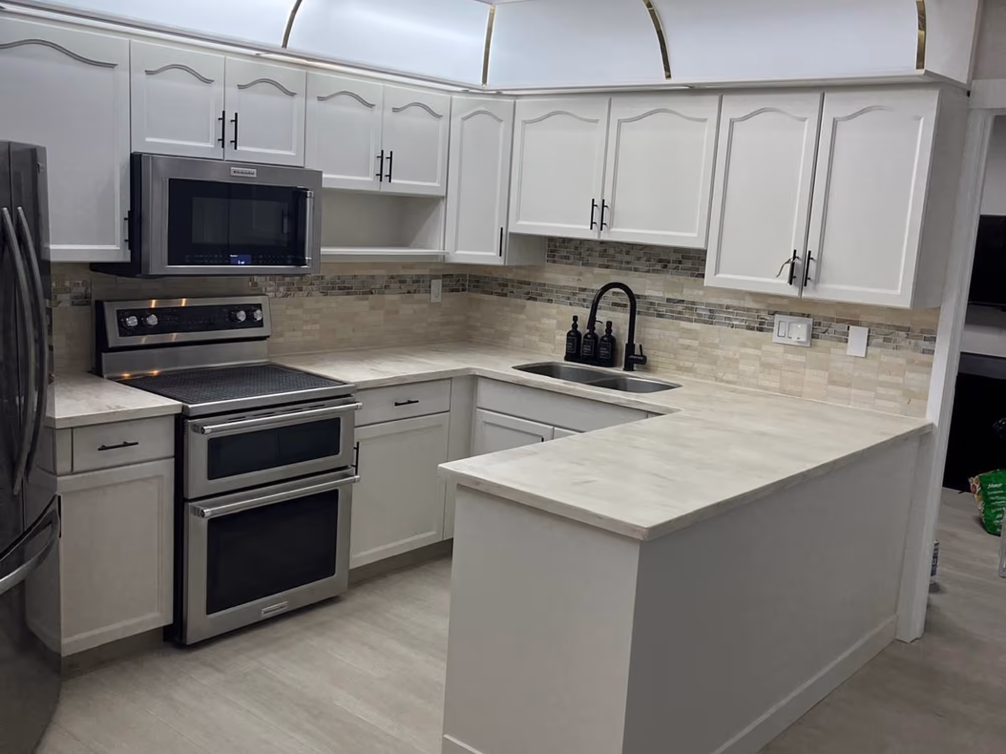 A high-end cabinet job should look like it was built that way—smooth, clean, and consistent. We focus on professional prep, spray finishing, and durable systems so your kitchen or vanity looks sharp for years.