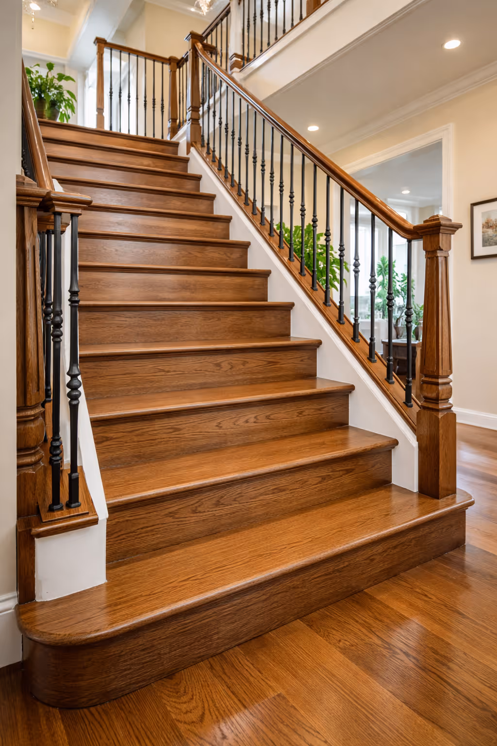 For stairs and rails, many clients choose satin or semi-gloss for durability. We recommend based on traffic and style.